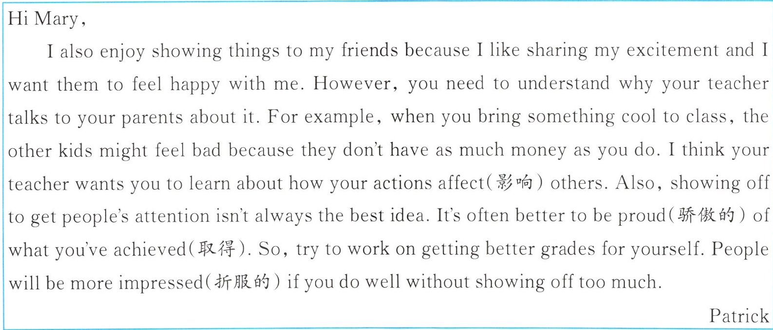 5. Do you like showing off things to others? Can you get on well with your classmates? How do you make friends in junior high school? Write to share your ideas in at least 60 words.