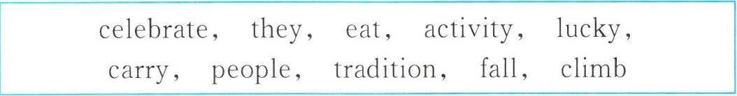 1. celebration 2. falls 3. traditional 4. activities 5. eating 6. people's 7. climbing 8. luck 9. their 10. carries