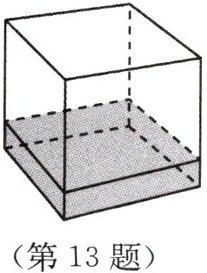 13. 如图,小明在一个有盖可密封的正方体盒子里装了一定量的水,他不断改变正方体盒子的放置方式,盒子里的水便形成不同的几何体。下列选项:①长方体;②正方体;③圆柱体;④三棱锥;⑤三棱柱。其中可能是盒子里的水形成的几何体是
