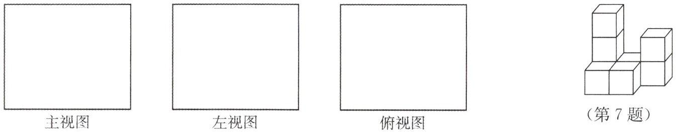 7. 如图所示为由$8$个相同的小正方体组成的立体图形,请在下面方框内分别画出从三个方向看到的该立体图形的平面图形.