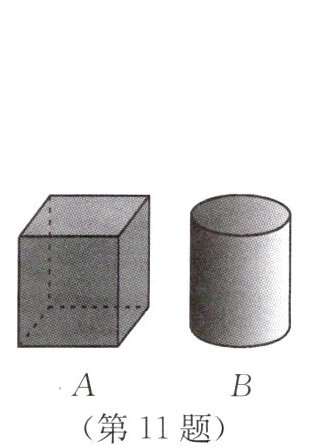 11. 有底面为正方形的长方体容器$A和圆柱体容器B$,容器材质相同,厚度忽略不计.从正面看,它们是完全相同的长方形,那么将$B$容器盛满水,全部倒入$A$容器,结果会