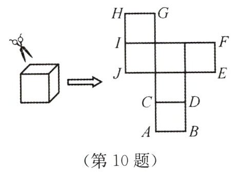 10. 如图,把正方体纸盒沿棱剪开,平铺在桌面上,原来与点A重合的顶点是点