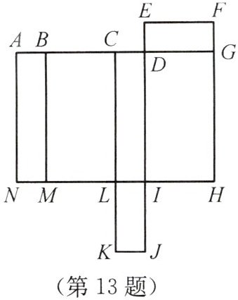 13. 如图为一个长方体的表面展开图,将它折叠成一个长方体,那么: