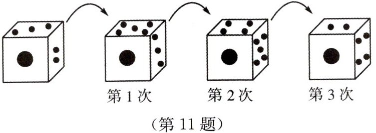 11. 一个正方体骰子放在桌面上,将骰子沿如图所示的顺时针方向滚动,每滚动90°算一次,则滚动第2023次后,骰子朝下一面的点数是