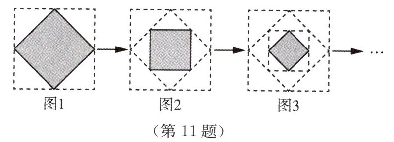 11. 如图1所示为2个正方形,分别连结小正方形各边中点得到图2,再分别连结图2中的小正方形各边的中点得到图3.