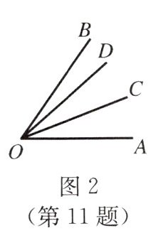 个不同的角。(4)在$\angle AOB$内部画10条射线$OC$,$OD$,$OE$,…,则图中有