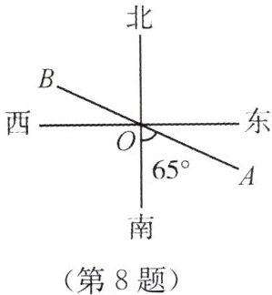 (1)南偏东65° 北偏西65°