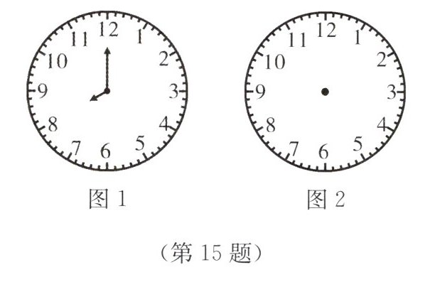 15. 同学们,日常生活中,我们几乎每天都要看钟表,它的时针和分针如同兄弟俩在赛跑,其中蕴涵着丰富的数学知识。