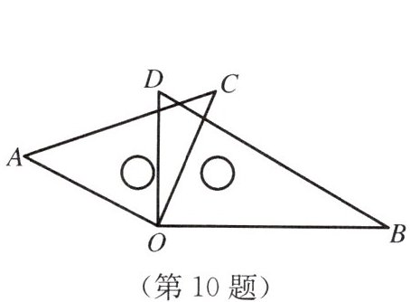 10. 如图,将一副直角三角尺叠在一起,使直角顶点重合于点$O$,则$\angle AOB+\angle DOC= $