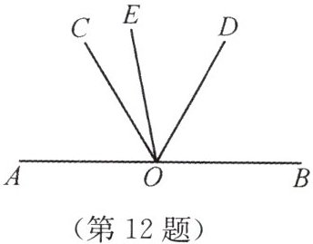12. 如图,点$O在直线AB$上,$\angle COD = 60^{\circ}$,$\angle AOE = 2\angle DOE$。