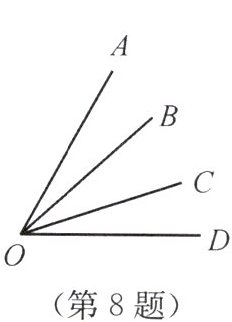 8. 如图,若$OB平分\angle AOC$,$OC平分\angle BOD$,且$\angle AOB = 25^{\circ}$,则$\angle AOD$等于(