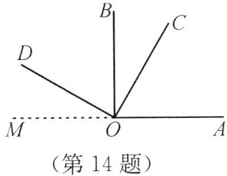 解:过点 $O$ 作射线 $OM$,使点 $M$,$O$,$A$ 在同一条直线上。