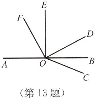 13. 如图,$O$ 是直线 $AB$ 上一点,$\angle AOE$ 是直角,$\angle FOD = 90^{\circ}$,$OB$ 平分$\angle DOC$,则图中与$\angle DOE$ 互余的角有