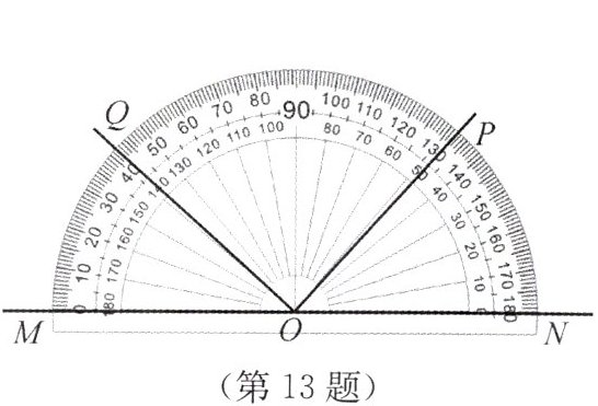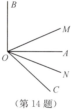 14. 如图,已知 $ \angle AOB $ 是直角,$ \angle AOC $ 是锐角,ON 平分 $ \angle AOC $,OM 平分 $ \angle BOC $,则 $ \angle MON $ 的度数是(