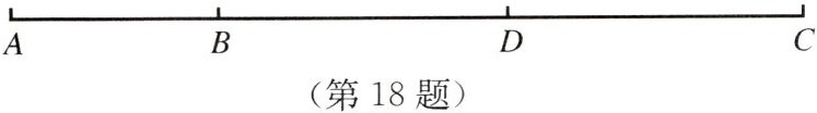 18. 如图,延长线段$ AB 到点 C $,使$ B C = 3 A B $,点$ D 是线段 B C $的中点,如果$ C D = 3 \mathrm { cm } $,那么线段$ A C $的长度是多少?