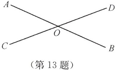 13. 如图,直线$AB$,$CD相交于点O$,若$\angle AOD= 2\angle AOC+30^{\circ}$,则直线$AB与CD$所夹锐角的度数为