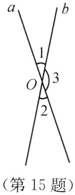 15. 【贵阳】如图,直线$a$,$b相交于点O$,如果$\angle 1+\angle 2= 60^{\circ}$,那么$\angle 3$的度数是(