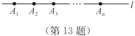 13. 如图,在直线$l上有若干个点A_1,A_2,…,A_n$,每相邻两点之间的距离都为$1$,$P是线段A_1A_n$上的一个动点.