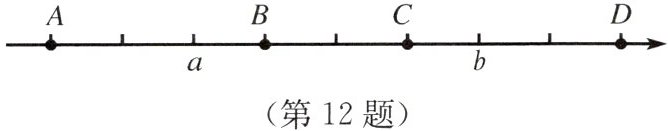 12. 如图,若数轴上$a的绝对值是b的绝对值的3$倍,则数轴的原点在