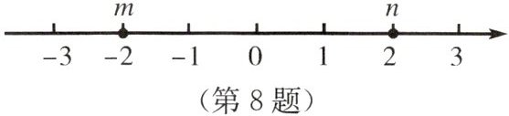 8. 如图,下列关于有理数$m$,$n$的说法,正确的是(