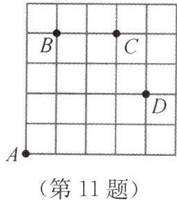 11. 如图,一只甲虫在 $5× 5$ 的方格(每小格边长为 1 )上沿着网格线运动,它从点 A 出发去看望点 B,C,D 处的其他甲虫,规定:向上、向右走为正,向下、向左走为负. 例如从点 A 到点 B 记为:$A\to B(+1,+4)$,从点 D 到点 C 记为:$D\to C(-1,+2)$,其中第一个数表示左右方向,第二个数表示上下方向.