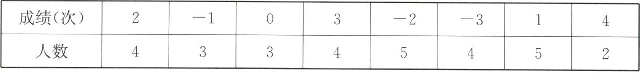 9. 开学时,老师对班上的男生进行了单杆引体向上的测验,以能做 8 次为标准,超过的次数用正数表示,不足的次数用负数表示,该班男生的成绩如下表所示: