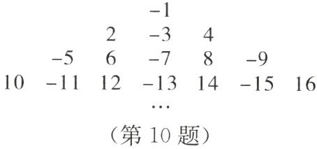 10. 观察下面一列数:-1,2,-3,4,-5,6,-7,…,将这列数排成如图所示的形式,如果按照这样的规律排下去,那么第 10 行从左边数第 9 个数是
