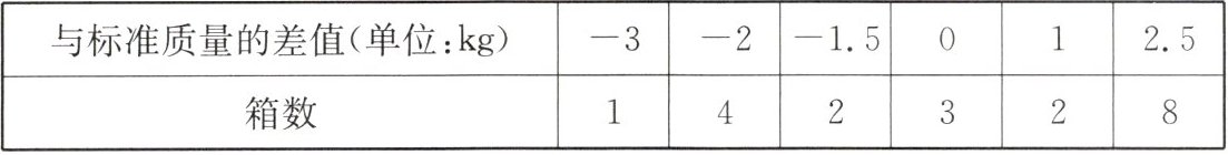 (2)0×3+1×2+2.5×8−3×1−2×4−1.5×2=8(kg).所以20箱橘子总计超过8kg.