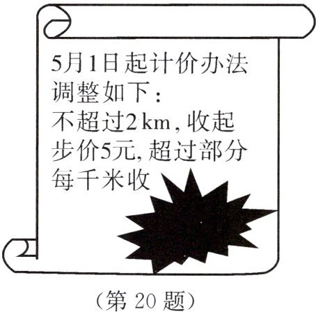 20. 某市从去年5月1日起对出租车计价办法进行了调整.今年小张在该市乘出租车时看到车内放有一张计价说明,但后面的几个字已受损(如图).