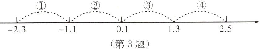 5. 已知 $ A $ 是数轴上的一个点, 将点 $ A $ 向右移动 $ 7 $ 个单位长度, 再向左移动 $ 4 $ 个单位长度, 终点恰好是原点, 则点 $ A $ 表示的数是
