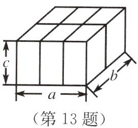 13. 有一个长、宽、高分别为$a$,$b$,$c$的箱子,按如图所示的方式打包,则打包带的长(不计接头处的长)至少应为