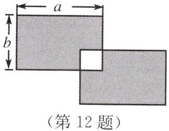 12. 如图,两个形状、大小相同的长方形部分重叠在一起,重叠部分是边长为$2$的正方形,则阴影部分的面积是
