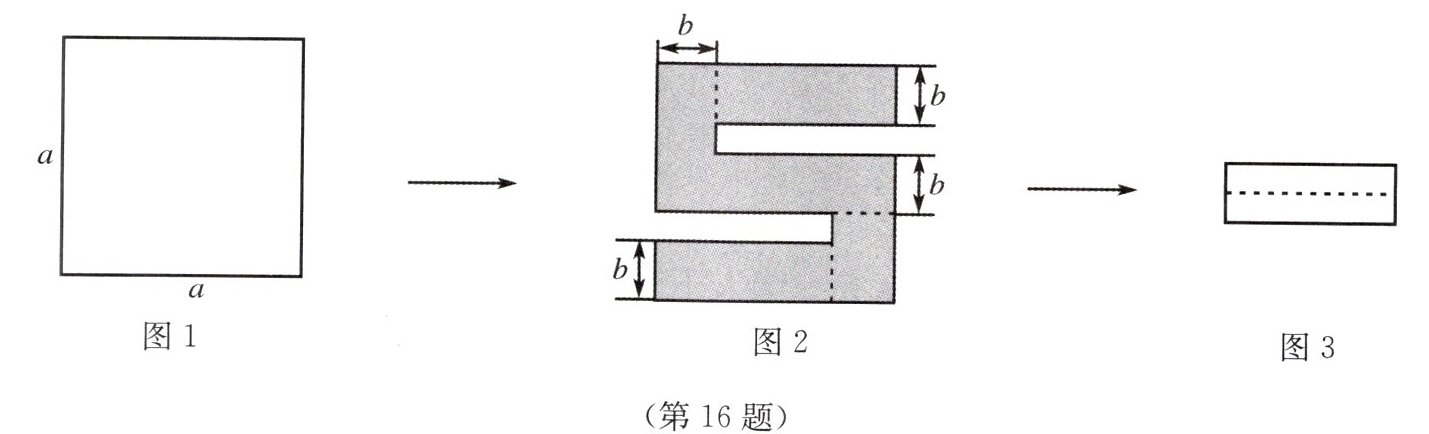 16. 【南昌】如图1,在一个边长为 $a$ 的正方形纸片上剪去两个小长方形,得到一个“