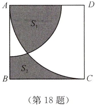 18. 【乐山】如图,正方形$ABCD的边长为3$,以点$A$为圆心、$2$为半径作圆弧,以点$D$为圆心、$3$为半径作圆弧. 若图中阴影部分的面积分为$S_{1}$,$S_{2}$,则$S_{1}-S_{2}= $