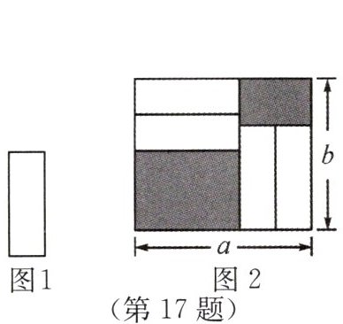 17. 把四张形状和大小完全相同的小长方形卡片(如图$1$)不重叠地放在一个底面为长方形(长为$a$,宽为$b$)的盒子底部(如图$2$),盒子底面未被卡片覆盖的部分用阴影表示,图$2$中两块阴影部分的周长之和是(