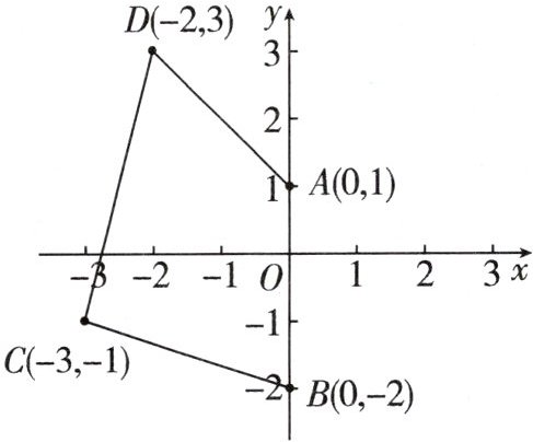 10. 四边形 $ ABCD $ 各个顶点的坐标分别为 $ A(0,1) $,$ B(0,-2) $,$ C(-3,-1) $,$ D(-2,3) $。