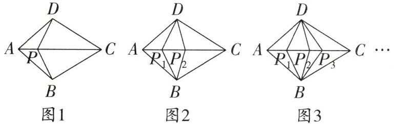 15. 规律探究 如图,在四边形ABCD中,AB= AD,BC= DC,点P为AC上的点(不与A,C重合).观察下列图形中全等三角形的对数,其中,图1中有3对全等三角形,图2中有6对全等三角形,图3中有10对全等三角形,…按此规律,第5个图中有