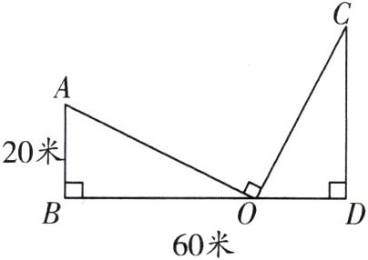 解:由题意,得AB=20米,BD=60米,OA=OC,AB⊥BD,CD⊥BD,AO⊥CO.