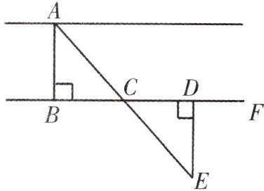 9. 如图,要测量河两岸相对的A,B两点之间的距离,可以在与AB垂直的河岸BF上取C,D两点,且使BC = CD. 从点D出发沿与河岸BF垂直的方向移动到点E,使点A,C,E在一条直线上. 若测量DE的长为15米,则A,B两点之间的距离为