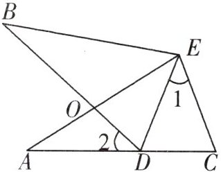 10. 如图,∠A = ∠B,AE = BE,点D在AC边上,∠1 = ∠2,AE和BD相交于点O.