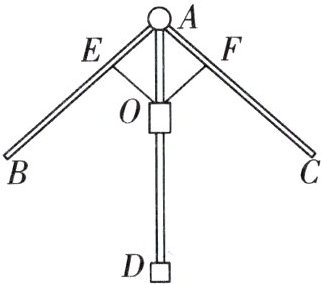 11. 传统文化 在我国传统工艺中,油纸伞的制作非常巧妙,其中蕴含着数学知识。撑开的油纸伞的截面图如图所示,伞背$AB = AC$,支撑杆$OE = OF$,$AE= \frac{1}{3}AB$,$AF= \frac{1}{3}AC$,当$O沿AD$滑动时,油纸伞开闭,问油纸伞开闭过程中,$\angle BEO与\angle CFO$有何关系?请说明理由。