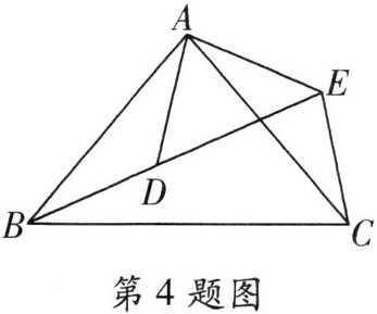 4. 如图,$AB = AC$,$AD = AE$,$\angle BAC = \angle DAE$,点 $B$,$D$,$E$ 在同一条直线上。若 $CE = 3$,$DE = 5$,则 $BE$ 的长为(