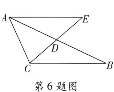 6. 如图,把 $\triangle ABC$ 的中线 $CD$ 延长到点 $E$,使 $DE = CD$,连接 $AE$。若 $AC = 4$,$AE = 5$,则 $\triangle BCD$ 与 $\triangle ACD$ 的周长差为