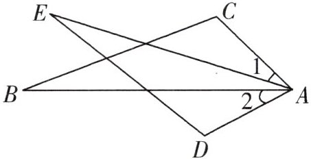 8. 如图,已知 $\angle 1 = \angle 2$,$AC = AD$,要想使 $\triangle ABC\cong\triangle AED$,还需要再添加一个条件,那么在①$AB = AE$,②$BC = ED$,③$\angle C = \angle D$,④$\angle B = \angle E$,这四个条件中可以选择的是
