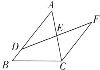 2. 如图,$D$ 是 $AB$ 上一点,$DF$ 交 $AC$ 于点 $E$,$DE = FE$,$FC// AB$,则 $AE$ 与 $CE$ 的数量关系是(