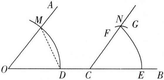 1. 如图,点C在∠AOB的边OB上,用尺规作出了∠NCB= ∠AOB,作图痕迹中,弧FG是(
