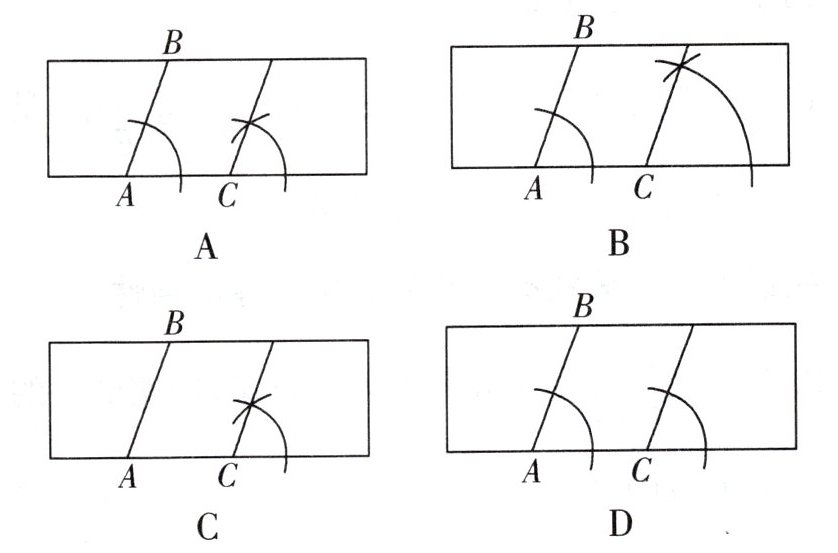 变式3.1 下面四个图是小明用尺规过点$C作AB$边的平行线所留下的作图痕迹,其中正确的是(