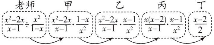 13. 老师设计了接力游戏,用合作的方式完成分式化简,规则是:每人只能看到前一人给的式子,并进行一步计算,再将结果传递给下一人,最后完成化简。过程如图所示: