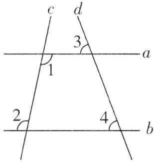 2. 如图,直线 $ a $,$ b $ 与直线 $ c $,$ d $ 相交,已知 $ ∠1 = ∠2 $,$ ∠3 = 70^{\circ} $,则 $ ∠4 $ 的度数为(
