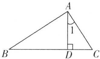 4. 已知:如图,在$\triangle ABC$中,$AD\perp BC$,垂足为$D$,$\angle 1= \angle B$.求证:$\triangle ABC$是直角三角形.